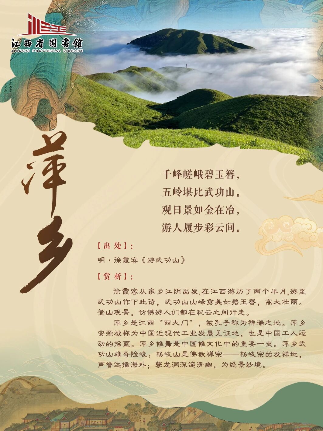 江西,是诗词也是画卷,是古人笔下的仙境,也是我们心中的向往。多年以前,薄薄的诗舟载着积年的云雨,才子隐士的孤傲和空名,缓缓沉没,山水犹可化作诗文笔痕,为今人吹来古时的岸边微风;多年以后,发黄的语文课本为蚁所噬,但书中山河,并非遥不可及,它就藏在我们的文化感知里,像一本无字的诗经,等你会心翻阅,与你畅叙神游。山水是大地的诗词,诗词是文字的山水。跟着诗词打卡赣鄱大地,是与历史的对话,也是心灵的洗礼。