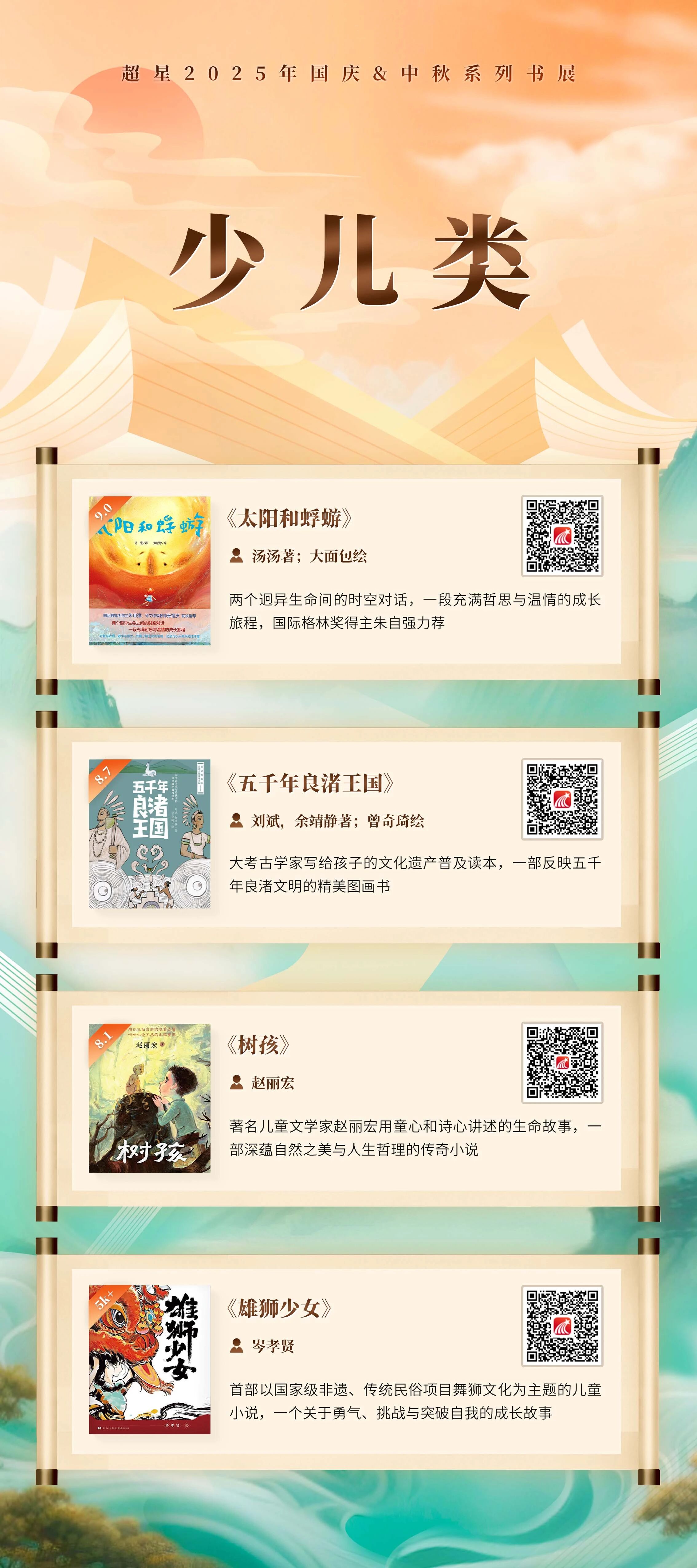 中秋皓月映华夏,国庆盛景耀九州,值此双节同庆、家国共贺之时,超星公司携手各地图书馆,以“月光所至·皆为华夏”为主题,精心策划国庆&中秋系列书展。主题书展既有经典著作沉淀千年智慧,又有时代新声激荡家国情怀,同时,活动设计巧妙融合传统文化与现代阅读,让读者在书香中穿越古今,感受中华优秀传统文化的独特魅力与深厚底蕴。本展以书为媒,以文化心,不仅引领全民阅读新风尚,更在字里行间凝聚起中华儿女的磅礴力量,为文化强国建设添砖加瓦,彰显图书馆之责任担当与时代使命。