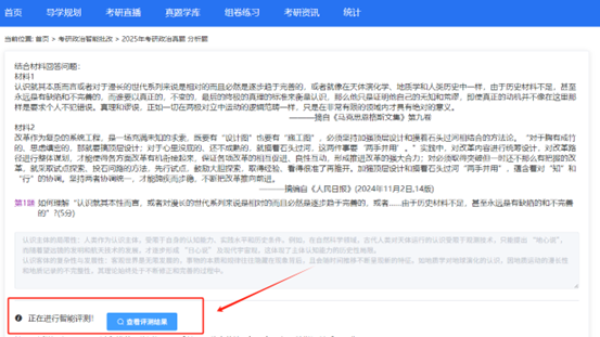 AI 系统通过深度学习历年真题评分标准,能精准识别答案与参考答案的匹配度。以政治分析题为例,不仅给出总分,还会拆解每个得分点: