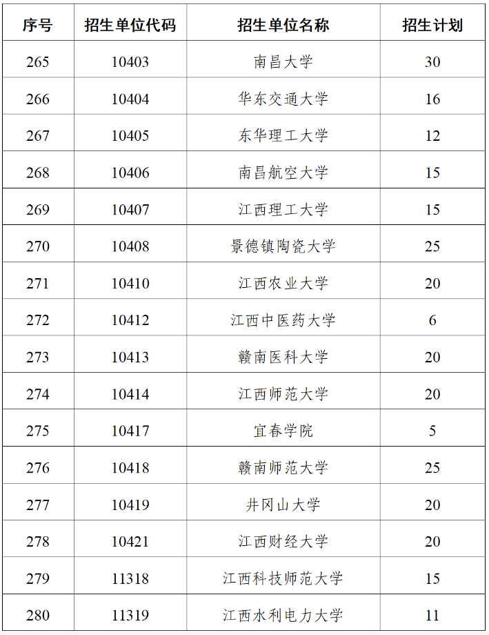 考研信息服务 | 31期:研究生专项招生,江西275人!