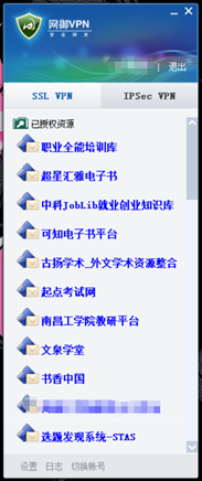 2.成功登录VPN后,即可像校内网用户一样使用南昌工学院图书馆的数字资源。