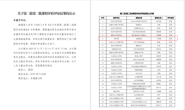 近日,南昌工学院第二轮第二批课程评估评审结果正式公示,图书馆文献检索教研室负责的《文献检索》课程凭借扎实的教学基础、紧密的课程体系及稳定的教学成效,获评“优秀”等级。