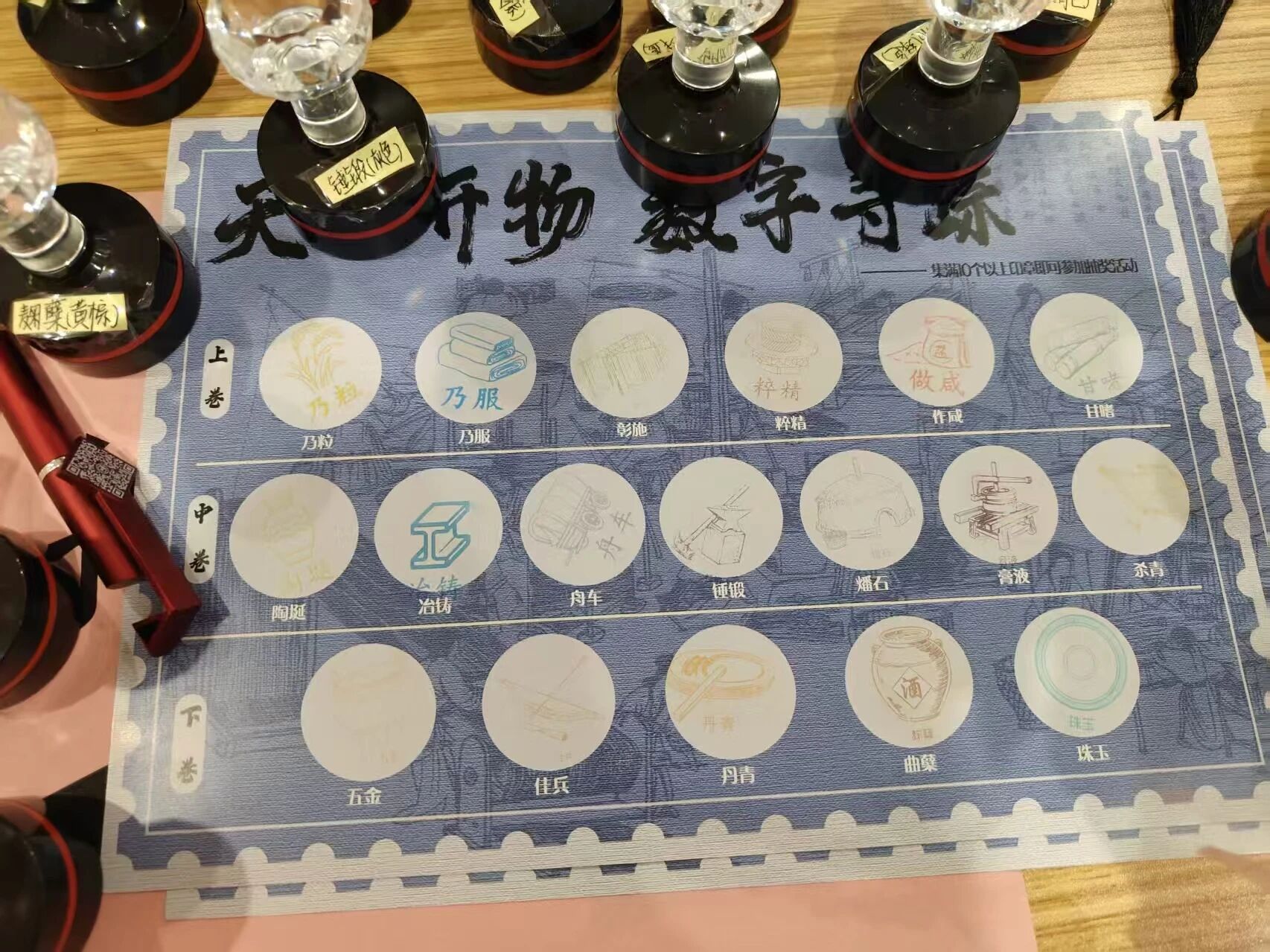 参与活动的师生先找工作人员领取“数字资源集章图”,前往体验数字资源打卡集章,集满10个印章可参与抽奖,有机会获得小礼品或者“天工开物”互动体验机会(详情咨询现场工作人员)。